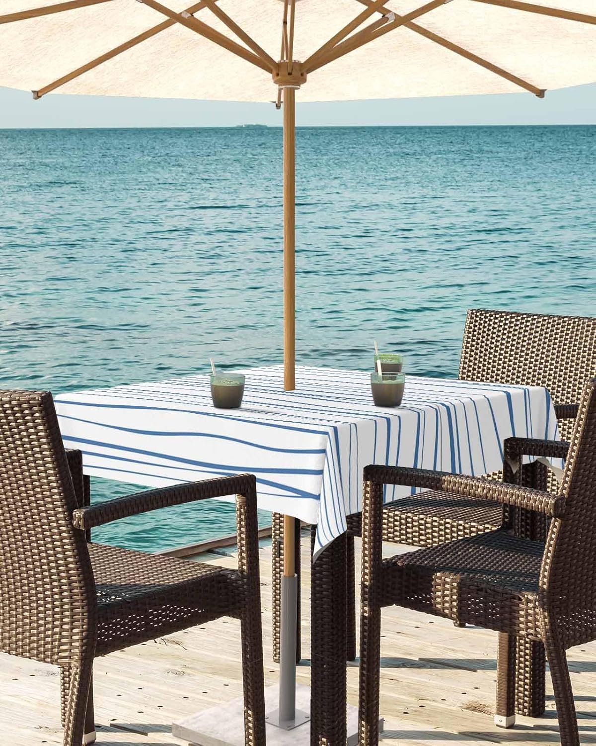 Why Choose Kinminaili Kinminaili Outdoor Table Cloth with Umbrella Hole: 1. High-quality Material & Exquisite Craftsmanship: This tablecloth is made of 100% polyester, stain and waterproof. And we use exquisite stitching technology to make it more serviceable 2. Bright Up Your Outdoor Table: Our tablecloth is printed with delicate patterns, whose vibrant color and stylish design will impress your guests and bring an unique dinning experience 3. Easy to Clean: This table cloth is machine washable; Do not bleach and do low temperature ironing if necessary Sizes You Can Choose: 54" Round: Seats 4 - 6 people 60" Round: Seats 4 - 6 people 54" Square: Seats 4 - 6 people 60" Square: Seats 4 - 6 people 52" x 70" Rectangular: Seats 4 - 6 people 54" x 80" Rectangular: Seats 4 - 6 people 60" x 84" Rectangular: Seats 6- 8 people 60" x 102" Rectangular: Seats 8 - 10 people 60" x 120" Rectangular: Seats 10 - 12 people